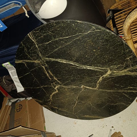 Der har ligget et marmorplade i 90cm. Så kan evt bruges til samme, eller til en anden rund bordplade.