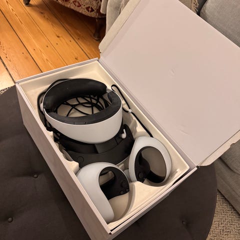 Sælger min playstation vr2 til ps5 som jeg fik omkring 4. Dec. Kun brugt 3 gange. Sælger den fordi jeg købte den primært for resident evil I vr, men følte for bøvlet og omrokere rummet og hurtigt mistede interessen. Den har alle dele inklusiv den originale æske.