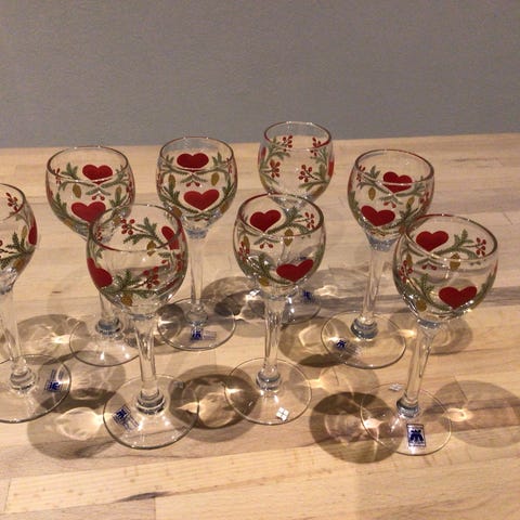 6 flotte juleglas fra Firkløveren, fremstillet hos Magnor Norway sælges for kr 75 PR stk plus porto eller afhentet Herning. De måler 18 cm i højden.