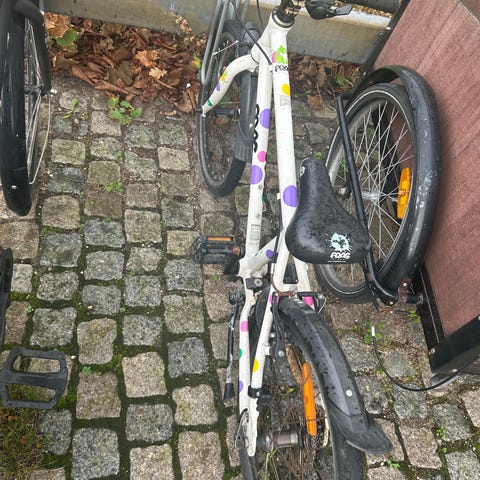 Baghjulet har sat sig fast jeg ved ikke lige hvad der er sket, måske en med noget værktøj kan fikse det, har ikke selv prøvet da min pige er vokset fra den. Prisen er sat derefter.