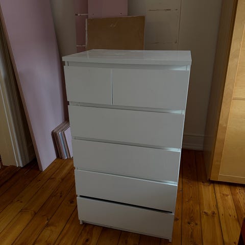 Kommode gives bort. Kræver lidt reparation i forhold til at sætte fronten på den ene skuffe på og et manglende håndtag. Men ellers fungerer den fint.