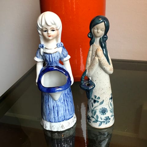 Sælger min samling af smukke gamle svenske blomsterpigevaser / keramikpiger. Design Elsi Bourelius og Ulla Skogh for Jie Gantofta. Fra 60/70’erne. Rigtig flot stand, med lidt alderssvarende brugsspor. De mindste måler fra 12-13 cm, de mellemste fra 17-19,5 cm. Den største 30 cm.