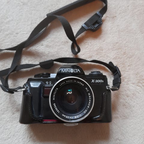 Minolta AF-C Kamera med 35mm f/2.8 objektiv. Kameraet har autofokus og automatisk eksponeringskontrol. Designet til 35mm filmformat med en kompakt og robust krop. Velegnet til fotografering i forskellige lysforhold og til brugere, der ønsker en pålidelig analog kameraoplevelse.
