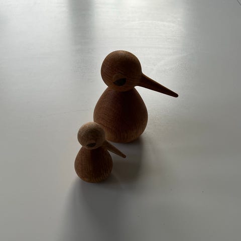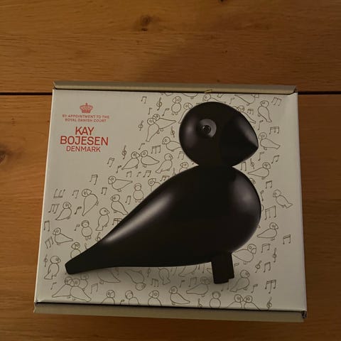 Kay Bojesen dekorationsornamenter i form af træfugle. Sættet indeholder flere fugle i forskellig størrelse og træsort, designet til brug som pynt ved andre højtider.