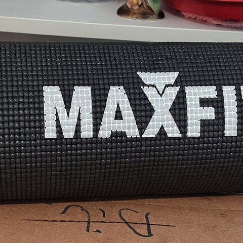 Yogamåtte/ Træningsmåtte i tyrkis/ sort farve, fremstillet af skummateriale, velegnet til forskellige former for træning og øvelser … jeg er hjemme hele søndag