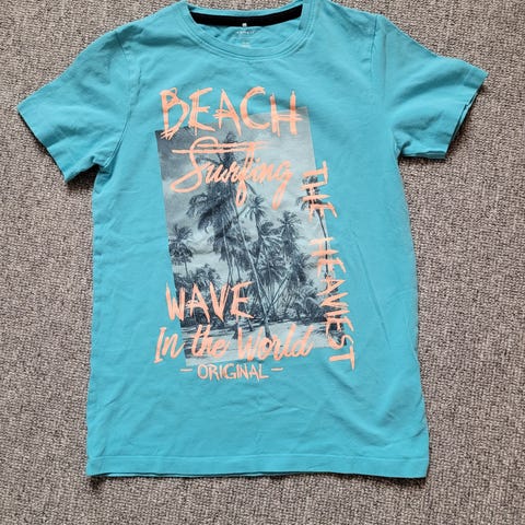 Set of five long sleeved t-shirts sized 158-164/13-14 years old. Name It: one with blue & black stripes and one with gray& black. H&M: three shades of solid blue. From smoke and pet free home. Washed with Neutral. Pick up from Kbh N.