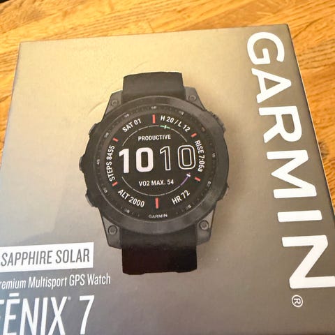 Sælger et Garmin Fēnix 7 Sapphire Solar i god stand. Et ekstremt solidt og alsidigt premium-ur med safirglas og solopladning – ideelt til løb, outdoor, styrketræning og daglig brug.