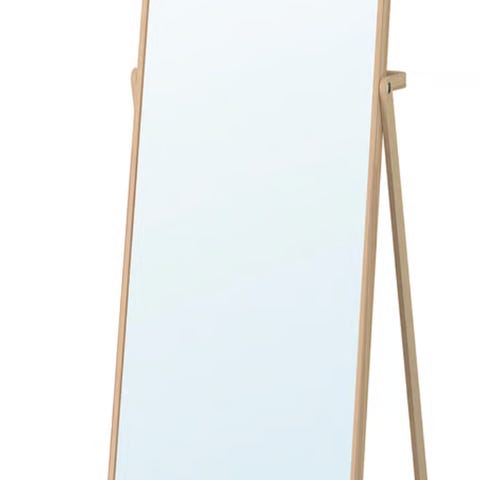 IKEA IKORNNES spejl med tøjstativ i lyst træ.