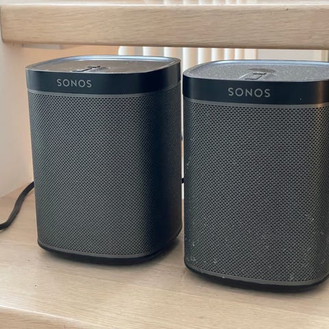 2x Sonos Play:1 højttalere. Fungerer som de skal. Lille bule i den ene højtaler forrest i metal mesh. Sælges samlet