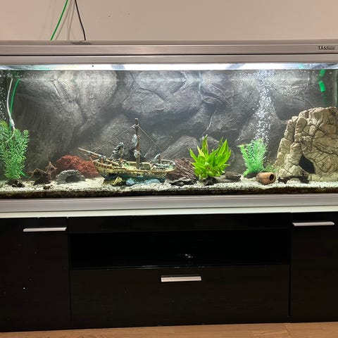 Hej sælger mit 250 liter akvarstabil da fruen i akvariet er blevet for stor. akvariet og skabet stor som helt nyt ikke en ridse eller hakke i akvariet eller på skabet. lys kan medfølge hvis ønskes det er Aqua light det er 4 led skinner og to strøm forsyner. pump medfølger ik da jeg gerne vil beholde den sammen med sten og planter. sandet er dit hvis du vil havde det men kan sagnes fjernes hvis ik ønsket der er en stor baggrund på men kan nemt fjernes. mvh Nicklas