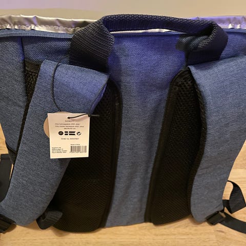 Sagaform City kølerygsæk i blå farve, lavet af RPET materiale. Rygsækken har dimensionerne 28x16x45 cm og er en køletaske. Der medfølger et blåt picnic tæppe og 4 kopper i genbrugsplast