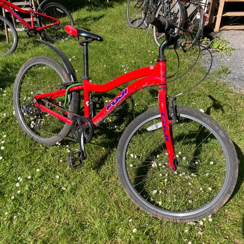 Kokua 24”, letvægtscykel, 8 gear, punkterfrie dæk med refleks, bremser virker godt, lygter medfølger. Cyklen kører og fungerer som den skal. Lille hul i sædet, men tager ikke vand ind.