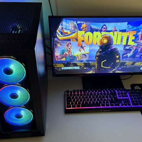 Komplet i7 RGB Gamer PC med skærm, keyboard og mus, hvor farverne på blæserne kan ændres til et væld af forskellige farver.
