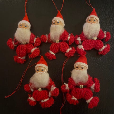 Cute, små nissepiger på garn - kan vikles om grene / grangrene osv som små drillenisser.