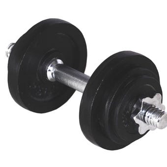 Justerbar håndvægt med metalvægte og håndtag. Velegnet til styrketræning og kan tilpasses i vægt ved at tilføje eller fjerne metalplader.