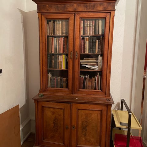 Træbogreol med hylder og skab