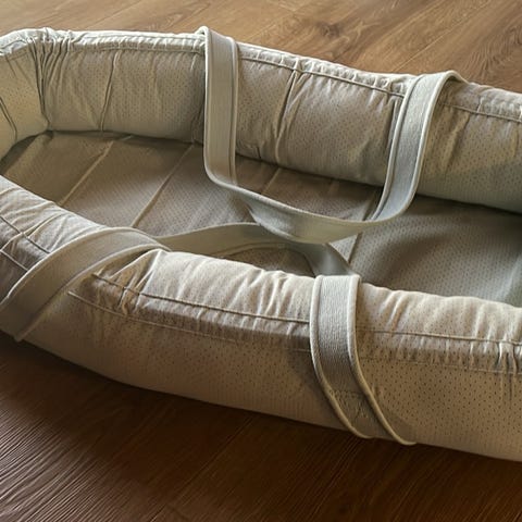Liewood babynest med polstret kant og bærereimer, grå med prikker