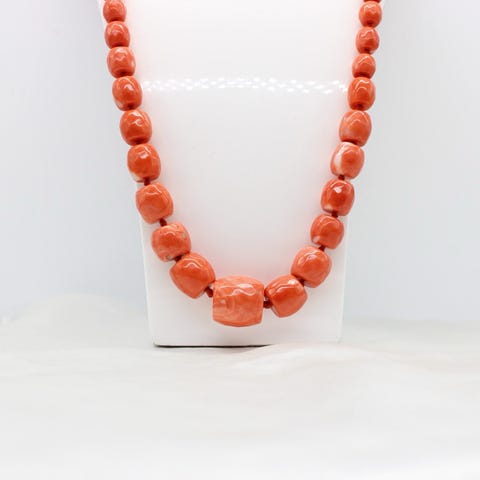Smuk halskæde fremstillet i 18 karat guld, med naturlige koraller fra Stillehavet.