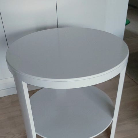Rundt blåmalet retro sofabord med hylde, mål: Ø: 75 x H: 49 cm