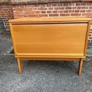 Opbevar og fremvis din vinylsamling ved hjælp af dette praktiske og klassiske vinylskab. Slidstærkt materiale: Konstrueret træ har en enestående kvalitet med en glat overflade, og det er både stærkt, stabilt og fugtafvisende.God opbevaringsplads: Det rummelige vinylskab tilbyder rigelig med opbevaringsplads til dine lp-plader, og det holder din musiksamling pænt organiseret.Robust top: Vinylskabets robuste top er ideel til opbevaring af din pladespiller eller andet elektronik.Flere funktioner: Dette pladespillerskab kan også bruges som et tv-bord, et sideskab i stuen eller som et arkivskab på kontoret.Træfødder: Træfødderne giver vinylskabet et naturligt og behageligt look, samtidig med at de giver stabilitet. Farve: Sonoma-egMateriale: Konstrueret træ, massivt eukalyptustræMål: 100 x 38 x 48 cm (B x D x H)Montering/samling påkrævet: Ja
