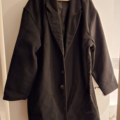 Sort herrefrakke i størrelse XL lavet af polyester. Frakken har dobbeltradet knaplukning og klassisk krave. Velegnet til udendørs brug i køligt vejr.den holder en meget varm…