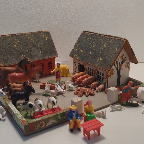 Mindst 15 af dyrene er fra Reisler. Bl.a. alle grisene. Drømmer du om at blive gårdejer er her chancen :-)