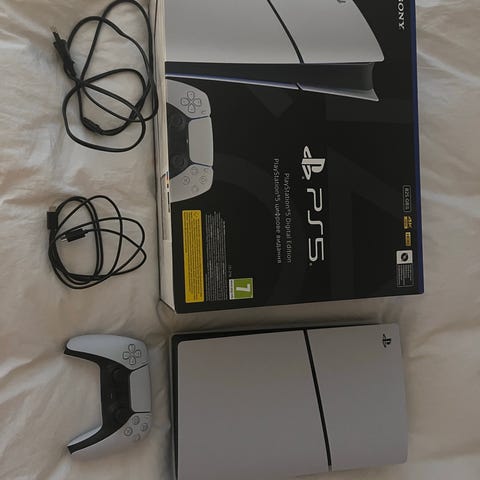 Sælger denne Sony PlayStation 5 spilkonsol. Inkluderer to trådløse controllere. Kommer i original indpakning og kvitteringen følger med. Købt i El-Giganten i november 2025 og har været brugt i en times tid. Fejler intet.