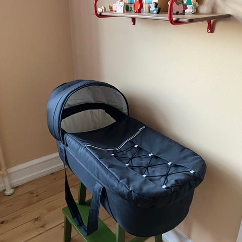 Trille Lift med hvalemønster. Bærer designet til at transportere spædbørn sikkert og komfortabelt. Kan hentes i Greve