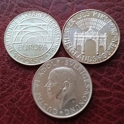 Sverige 2 stk 50 kr jubilæumsmønter i sølv 1975 + 76 i sølv i alt 54 gram sterling.