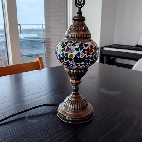 Fin ældre turkis bordlampe. Måler H21 cm til fatning Ø70 cm. Afhentes i Skovshoved/Klampenborg. Sælges for 250 kr. Se også mine andre annoncer!!! SENDES IKKE