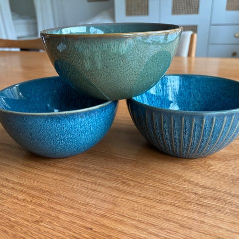 5 grønne skåle. Måler H 8 cm Ø14 cm. Sælges samlet for 100 kr. Afhentes i Skovshoved/Klampenborg. Se også mine andre annoncer!!! SENDES IKKE