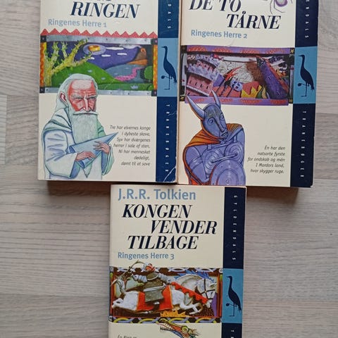 J.R.R. Tolkien Ringenes Herre bog med illustrationer. Bogen er på dansk og indeholder fantasy-genren. Omslaget viser en gruppe karakterer i kamp, og bogen er i paperback-format.