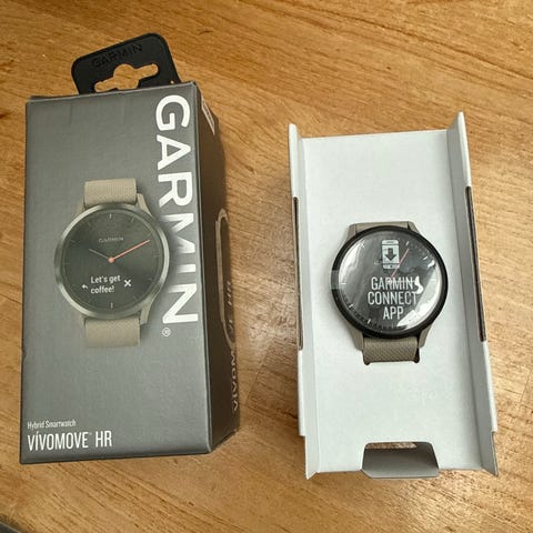 Garmin Vivoactive 3 ur til unisex. Uret har en rund urskive og en lys rem. Det leveres i original emballage.