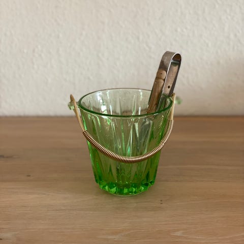 Smuk vintage isspand i slebet glas med flettet hank