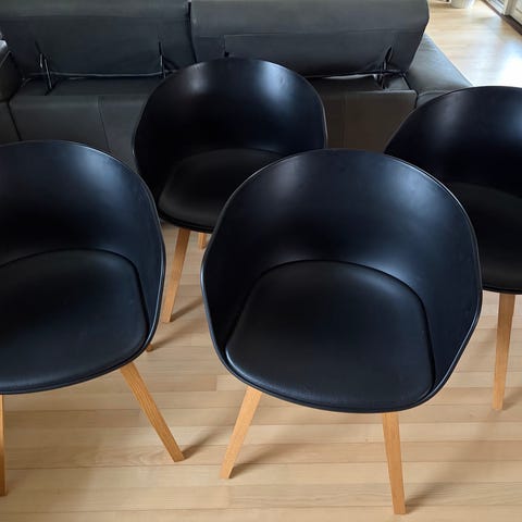 Hay spisebordsstole designet af Hee Welling model About A Chair AAC28. Lækre fuldpolstrede kvalitetsstole i sort skind. Når enkelthed og lethed kombineret med kvalitet mødes er denne stol skabt. Prisen er opgivet pr.stk. - 7 stk. tilbage på lager.
