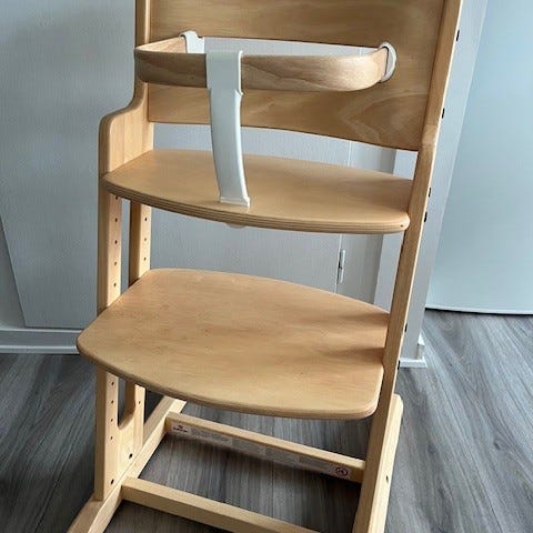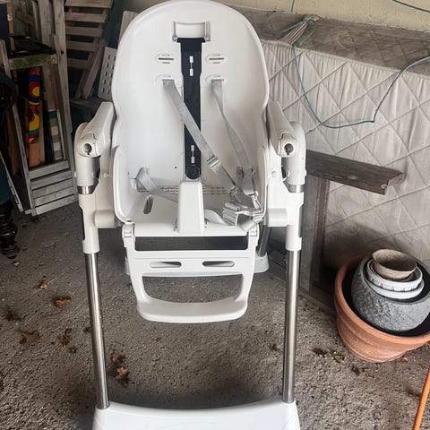 KAOS Klapp højstol i hvid. Meget små ridser og med “fødder”