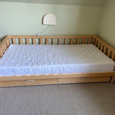 Dejlig børnesang sælges, da den desværre ikke passer i vores nye hjem (den er for høj til vores skråvægge). Den har et lækkert rustikt udtryk, men kan helt sikkert også males.