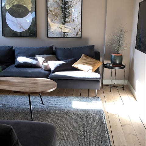 Sofaen er i god stand. De mindste puder der oprindeligt hører til Söderhamn er ikke med.