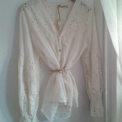 Fantastisk lækker stribet sømands/sailor bluse (råhvid og mørkeblå) med blå hjerter på albuerne. Brugt / vasket én gang. Ellers som ny. Desværre købt for lille. Købt på Louisiana. Nypris 850 kr.