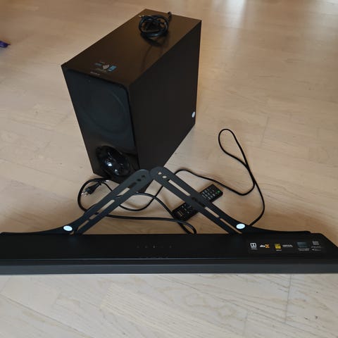 Der medfølger fjernbetjening samt strømkabel til både subwofer og soundbar