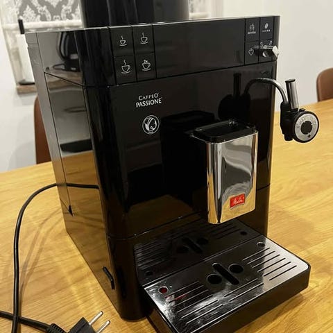 Melitta Caffeo Solo espressomaskine, sort. Maskinen er designet til at brygge espresso og har en kompakt størrelse, der passer til køkkenbordet. Den har ekstern mælkebeholder til cappuccino, latte, mv.