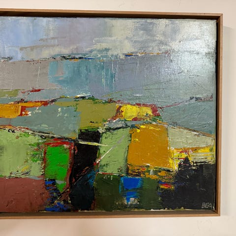 Lærredet er spændt op på en træramme, skal sættes i en pæn ramme af køber.