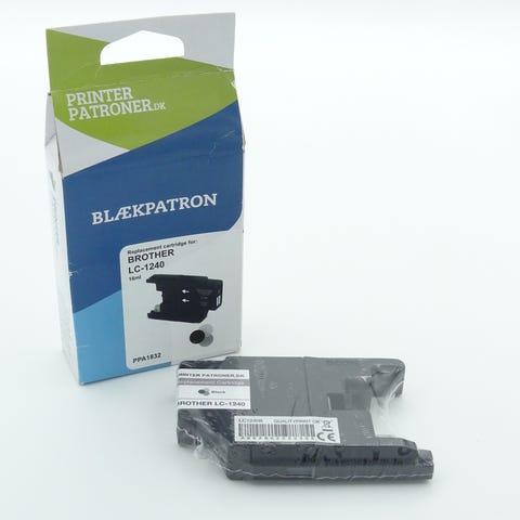 Brother LC1220BK blækpatron i sort farve. Kompatibel med specifikke Brother-printermodeller. Pakken indeholder en enkelt blækpatron i original emballage.