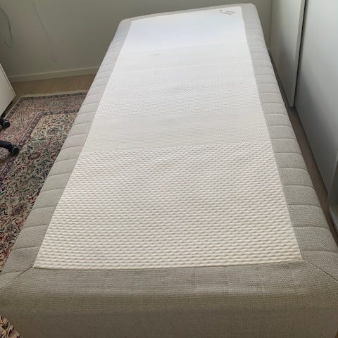 2 x Ikea sultan skaun senge med mål hver især 90x200 cm inkl. topmadras og sengekile. Hæftes sammen med beslag.
