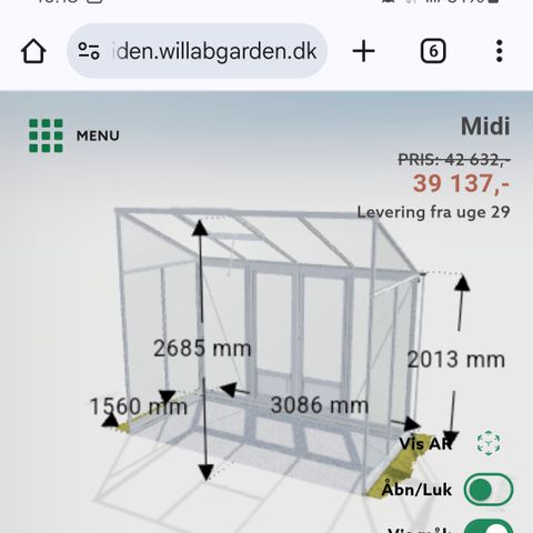 Vægdrivhus sælges gr. Flytning mål H.200. B. 190. D.70