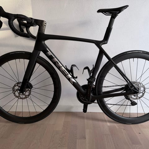 Jeg sælger min Trek Madone SL 6 AXS i størrelse L, købt 4. juni, 2025.