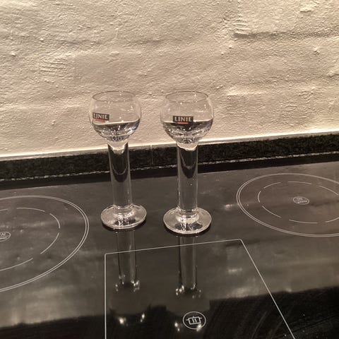 Linie akvavit glas i æske