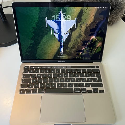 M1 MacBook Pro, 256 GB SSD, 8 GB RAM. Fra Late 2020.