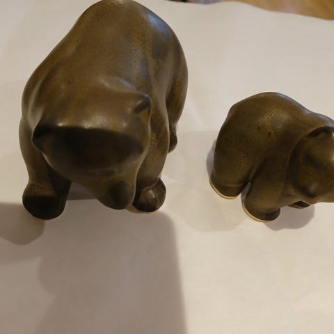 Unika stentøjs skulptur. Mand i kamp mod bjørn.