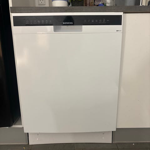 Siemens underbygget opvaskemaskine designet til indbygning under køkkenbordet. Enheden har et hvidt ydre og indvendige kurve til opvask. Ikke brugt meget og virker perfekt